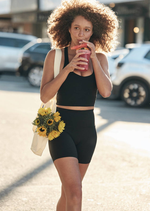 Meet your new summer workout essential: the Liberty 14cm Bike Shorts. Engineered in Liberty, our new sweat-wicking active fabric, these bike shorts are designed with lightweight breathability in mind. Complete with a soft fold waistband for stomach support, a discrete back phone pocket, and no front seam for added comfort, these shorts are perfect for yoga, Pilates, and other favourite studio workouts.