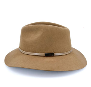 Crafted from luxurious soft wool felt, the Thorburn Fedora is the embodiment of sophisticated charm with a relaxed, lived-in allure. Its soft cut-edge brim creates gentle movement and fluid lines, offering a touch of understated elegance with every wear. The rich texture is complemented by a camel leather band and metal trim, adding depth and character to this timeless piece. Designed for comfort and longevity, the ComfyFit internal band ensures a secure, tailored fit, while the UPF50+ rating provides sun protection without compromising on style. Understated yet distinctive, the Thorburn is your go-to accessory for effortless polish - season after season.