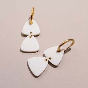 The Freya Dangle features a huggie style hoop in your choice of Gold plating paired with two delicately curved dangles.