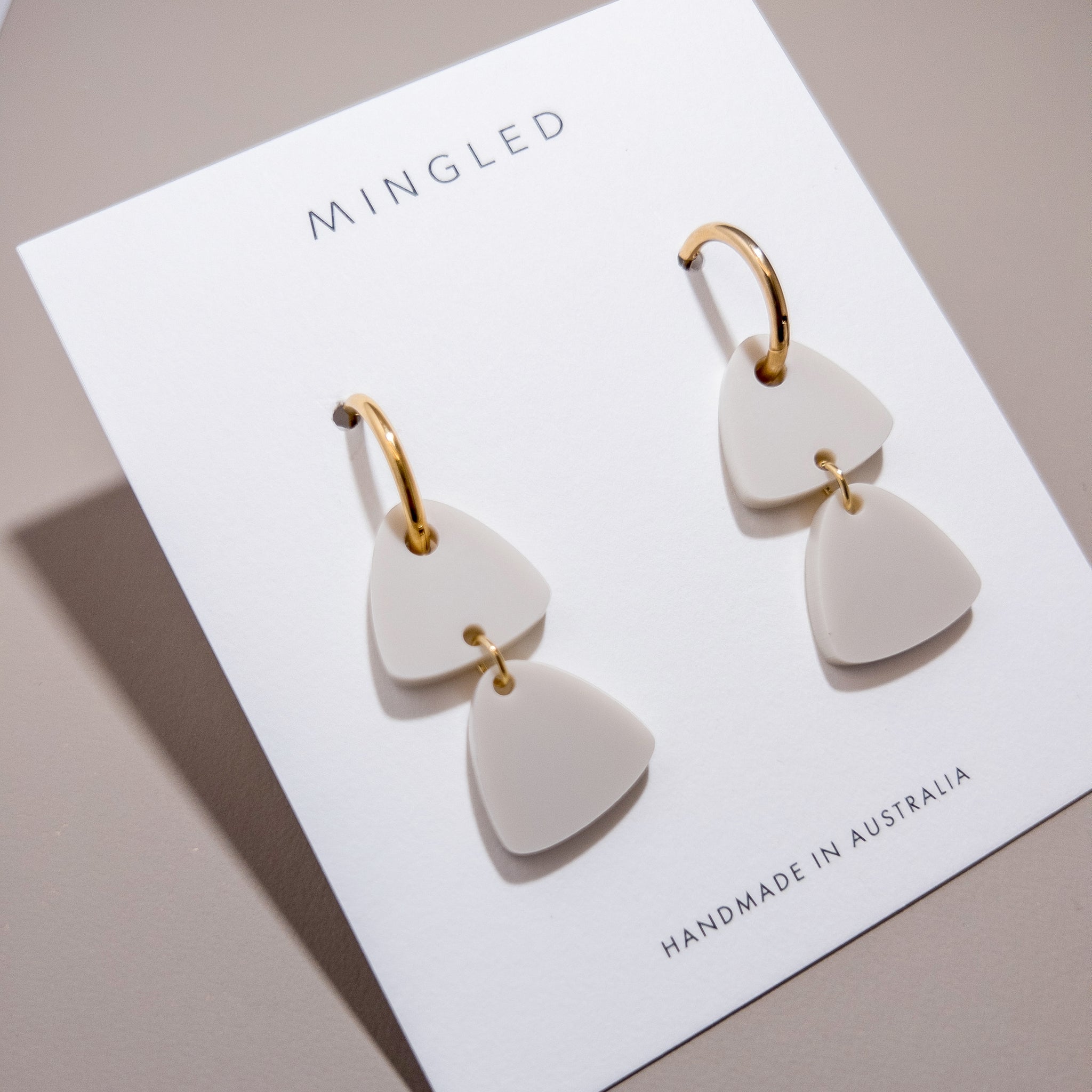 Mingled | Freya Huggie Dangle | Ivory Beige