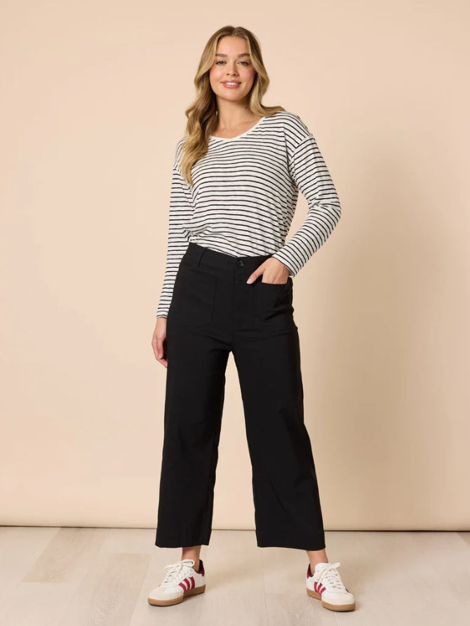 Threadz | City Stripe Long Sleeve Tee | Black/Ivory