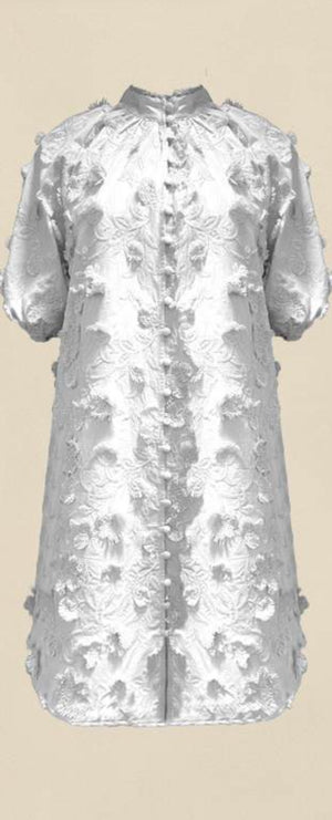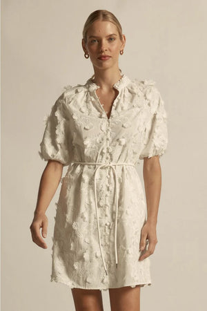 The Aspect Dress by Zoe Kratzmann is a stunning white knee length dress with a gorgeous embroidered fabric that creates a textural layer to the dress.