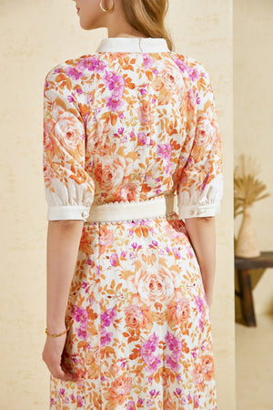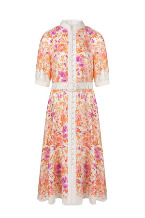 Esmee dress is the embodiment of romantic refinement, blending the natural elegance of tencel and linen with bold floral artistry and structured tailoring. It's an effortlessly graceful piece for occasions where femininity, comfort, and sophistication are equally important.