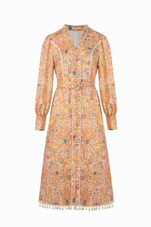 The Lumira Linen Dress by GDS is stunning floral print dress with delicate lace joinery that elevates the dress.