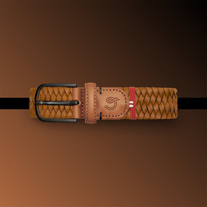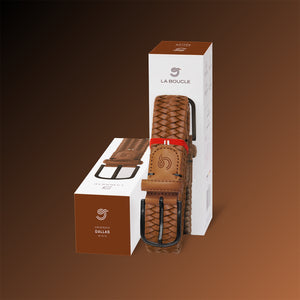 The Napoli La Boucle belt, elastic braided in leather, tan colour. Finished with vegetable tanned Italian leather. Stainless steel buckle for optimal strength and durability, and minimal risk of skin allergic reactions.