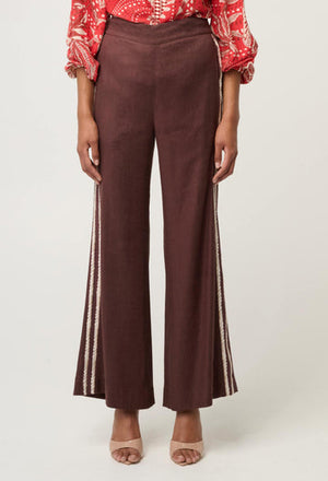 Once Was | Liora Linen Viscose Stretch Rope Trim Detail Pant | Rustic Twine