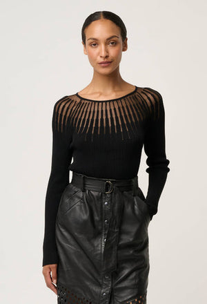 Once Was | Rhiannon Viscose Nylon Sheer Knit Top | Black